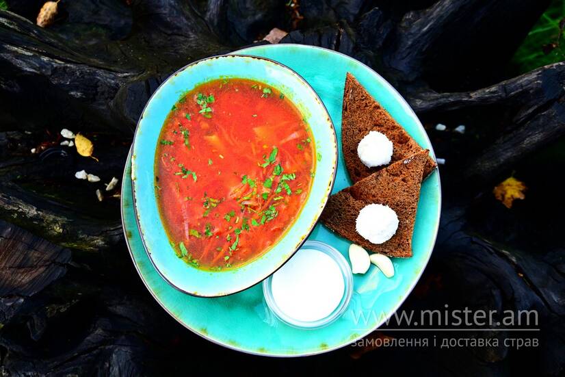 Ресторація Озеро Борщик зі свининою з крученим салом і гріночками