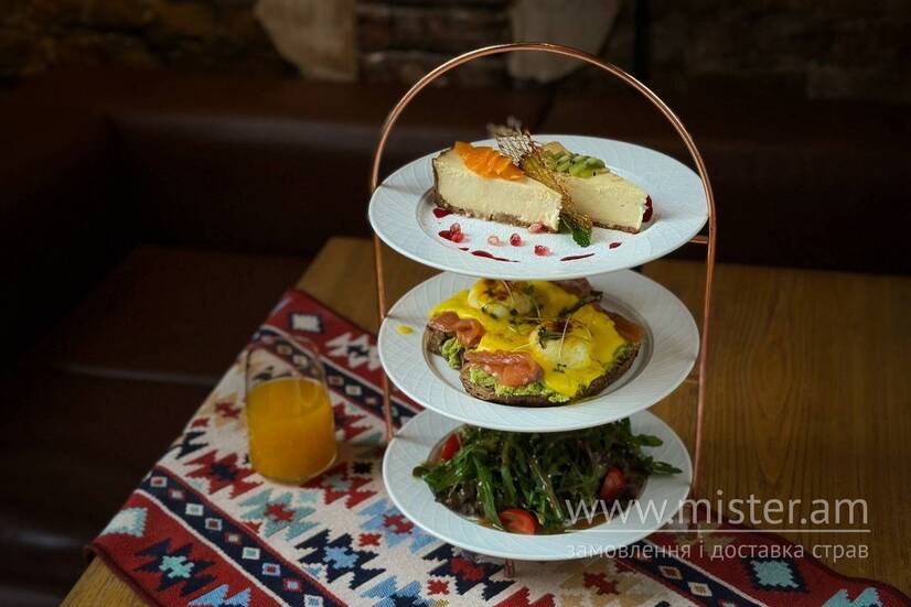 - мікс салатів з томатами чері та медово-гірчичним соусом;