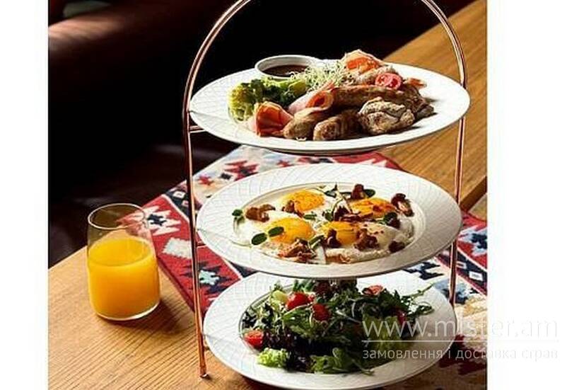 - салат (мікс салату, рукола, чері, соус медово-гірчичний).