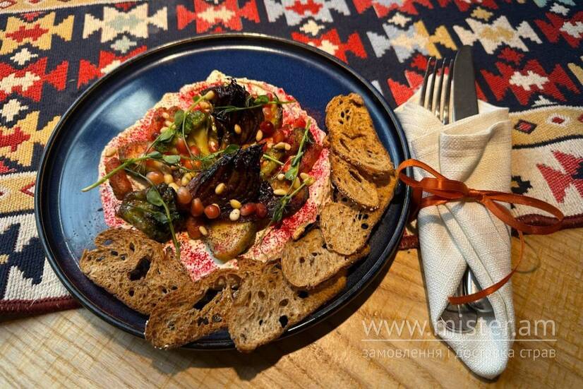 Салобіє Фісташковий лабне з карамелізованими овочами