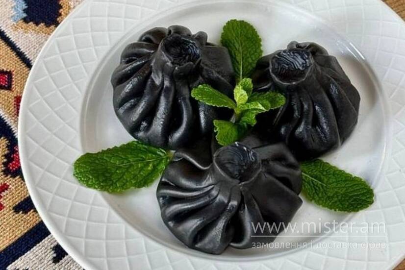 Хінкалі з сиром сулугуні та бринзою з додаванням молока, вершків та м’яти.