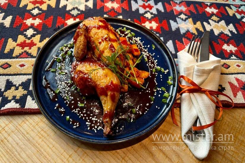 Салобіє Кукурудзяне курча з запеченим бататом і кизиловим соусом
