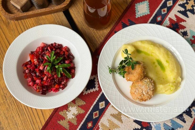 - Рибні котлетки з картопляним пюре;