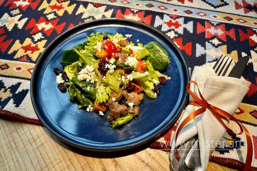 Поєднання соковитої качки, солодкого батату, свіжої зелені та ароматного соусу. Ідеально підходить, як теплий салат на обід або легку вечерю.