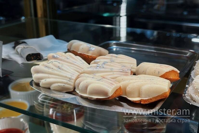 Вишукане французьке печиво з ніжною пористою текстурою та тонкою глазур'ю з білого бельгійського шоколаду.