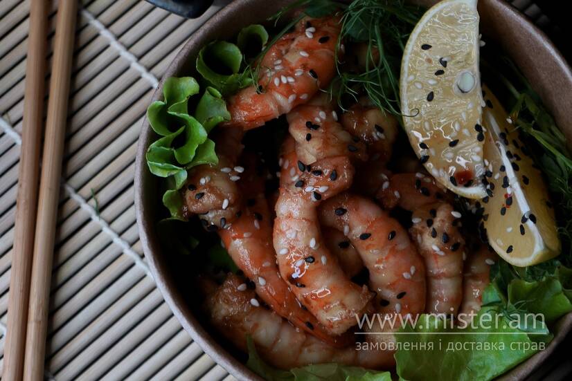 Смажена креветка з соусом світ чилі.