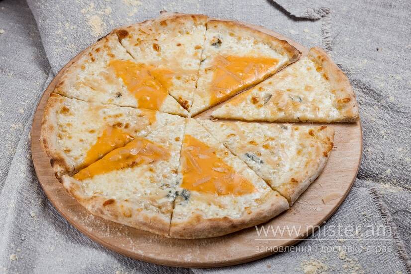 Соус вершковий, сир моцарела, сир дорблю, сир чеддер, сир пармезан.