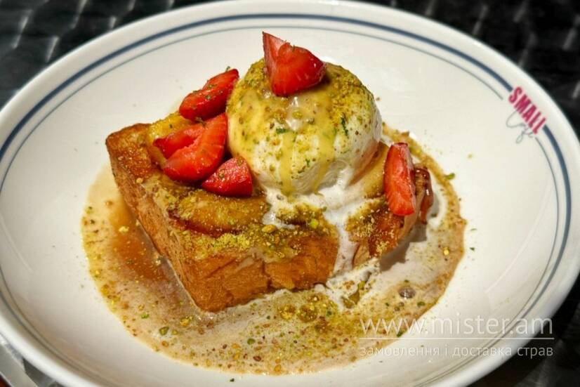 Small Cafe Френч Тост з карамелізованим бананом, солоною карамеллю та домашнім морозивом