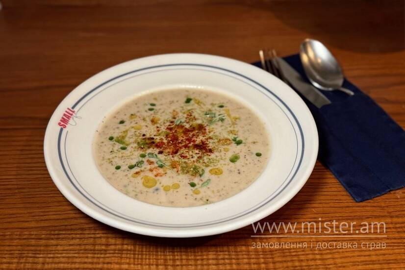 Small Cafe Крем-суп із цвітної капусти з креветками та фісташкою