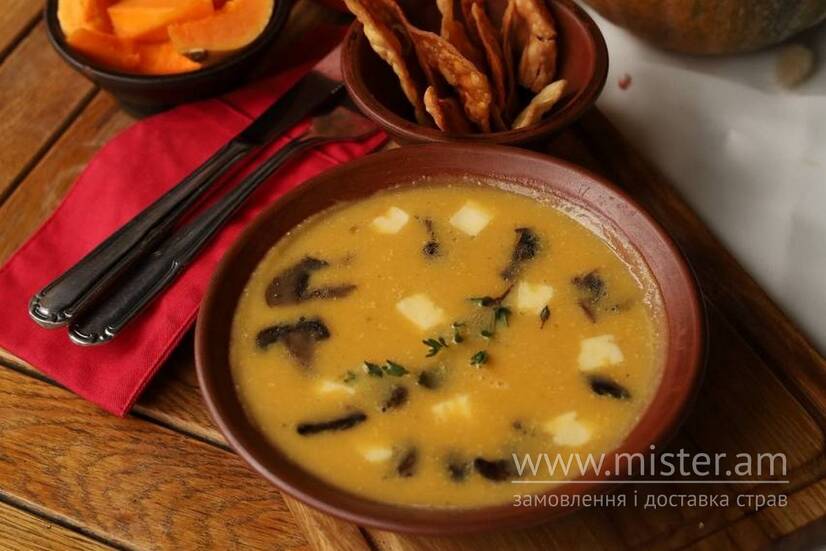 Софра Гарбузовий крем-суп з печерицями та домашньою бринзою