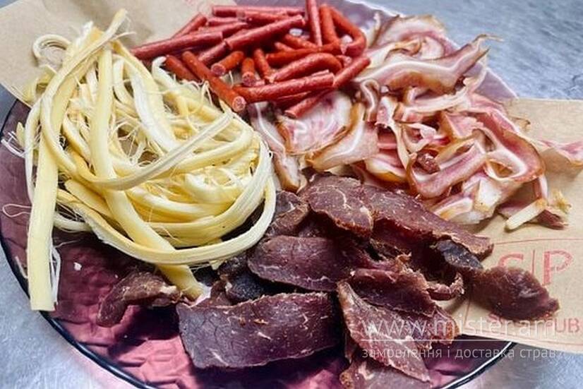 Копчений сир сулугуні, бастурма яловича, копчені свинні вуха.