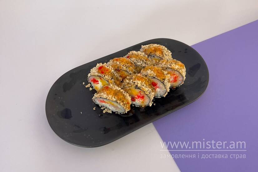 Рис, норі, сир філадельфія, тунець, манго, масаго червона, паніровка панко, соус солодкий чилі.