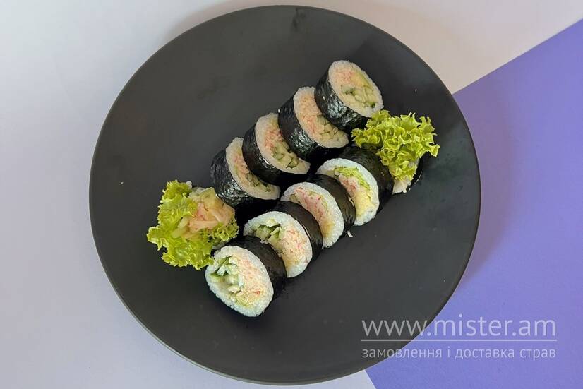 Норі, лист салату, огірок, авокадо, рис, крабовий мікс.