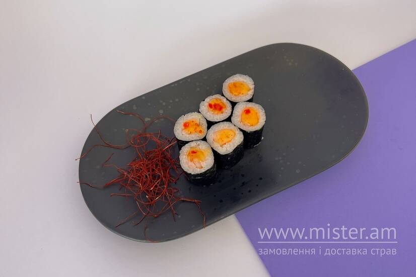 Креветка, рис, соус солодкий чилі, нитки чилі, норі.