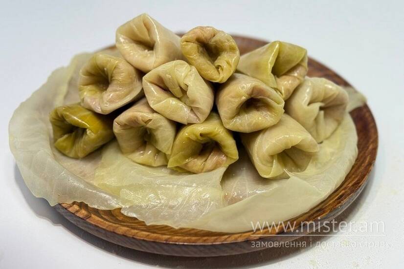 Склад: м’ясо свинини, м’ясо куряче, сало, цибуля ріпчаста, сіль, перець чорний мелений, вершки, яйця курячі, рис, капуста білокачанна, олія рослинна.