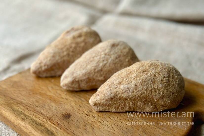 Склад: м’ясо куряче, цибуля, сало шпиг, яйця курячі, хліб для тостів, вершки, шинка, цибуля зелена, зелень кропу, масло вершкове, олія рослинна, сіль, перець чорний.