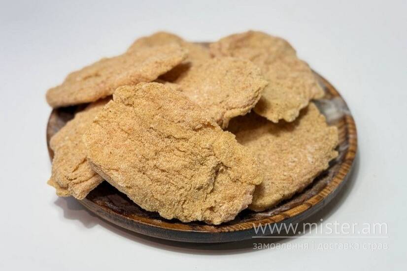 Склад: м'ясо куряче, яйця курячі, борошно пшеничне, молоко, сіль, перець чорний мелений.