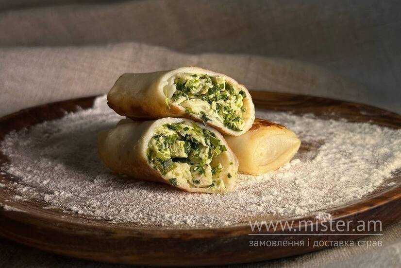 Млинці зі шпинатом, куркою та сиром сулугуні (нф)