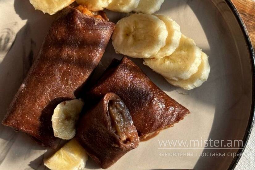 Млинці шоколадні з бананом та шоколадом (нф)