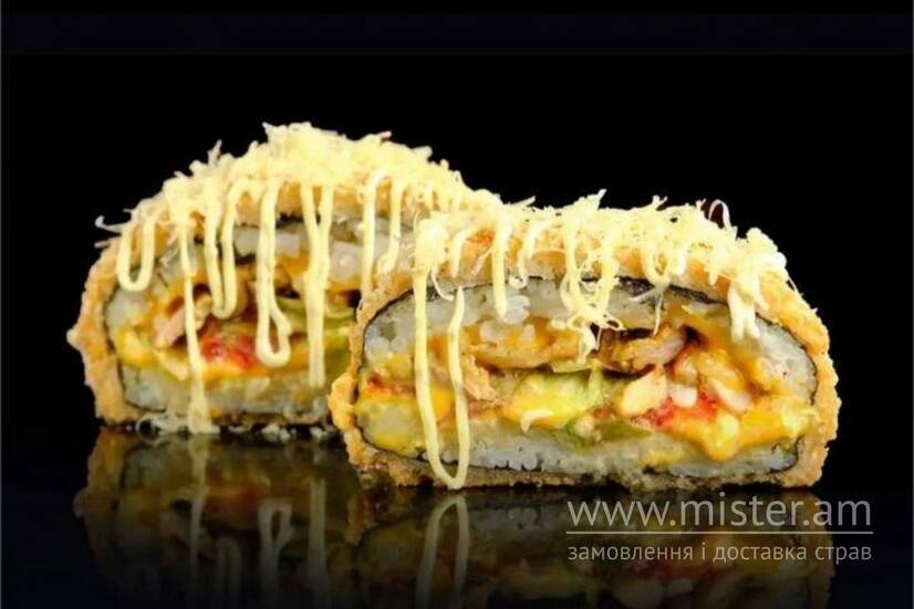 Запечене курча, рис, сир Чеддер, айсберг, соус, сир пармезан.