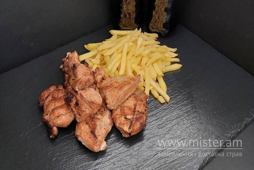 Свинний ошийок, картопля фрі та напої у подарунок.
