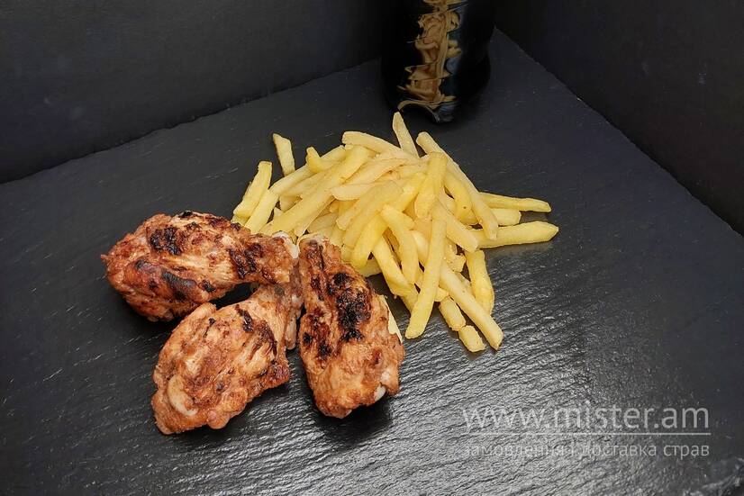 Крильця діабло (гострі), картопля фрі та напій у подарунок.