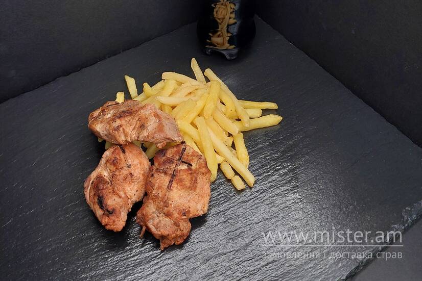 Свинний ошийок, картопля фрі та напій у подарунок.
