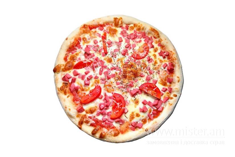 Сир моцарела, соус пілатті, ковбаса варена, томати свіжі, сир пармезан, прованські трави.