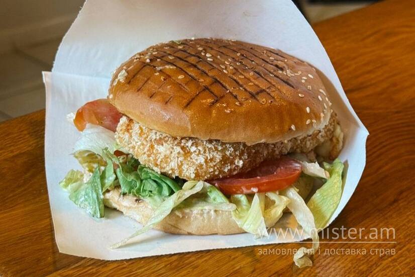 Булочка, сирна котлета, айсберг, помідор, соус біг мак.