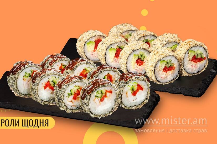 - Соєвий соус - 40 мл (1 шт). Імбир - 10 г. Васабі - 5 г.