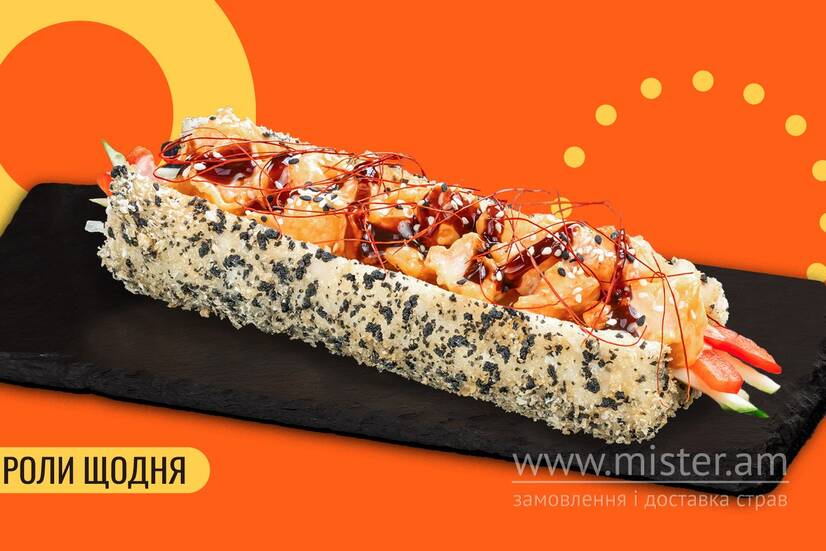Рис, креветка темпура, огірок, салат айсберг, перець болгарський, борошно темпура, сухарі панко, соус світ чилі, соус унагі, кунжут, чилі нитка, норі.
