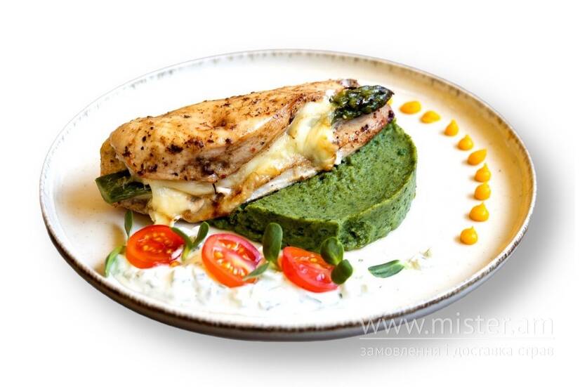 З картоплею під сиром пармезан та соусом дзадзикі.