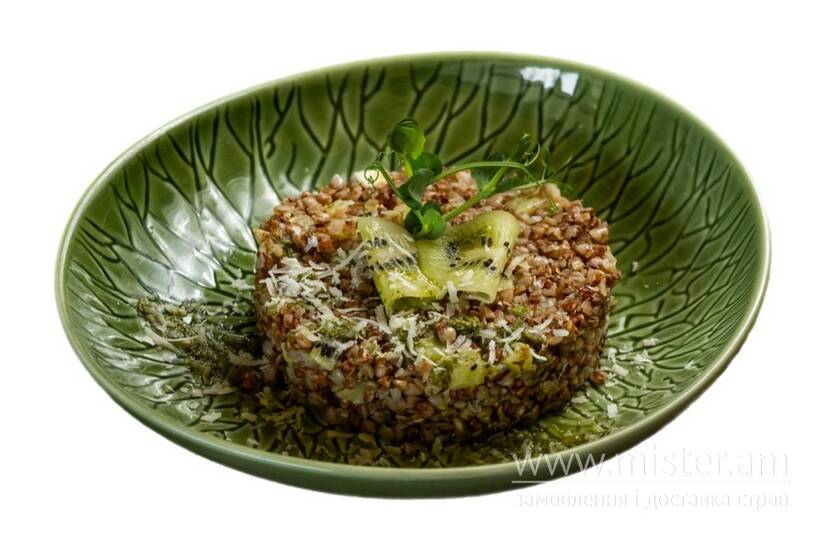 Гречка з ківі, соусом песто та пармезаном