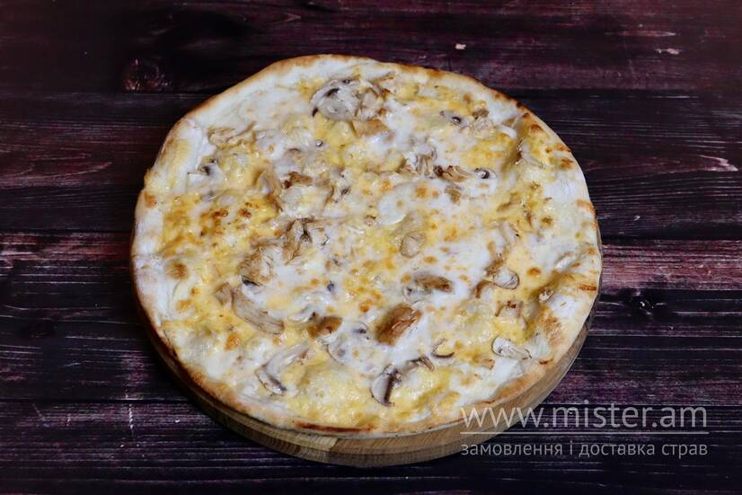 Соус вершковий, сир твердий, шампіньойни, філе куряче.