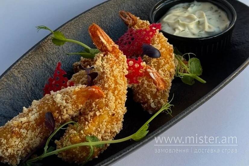 Креветки в паніруванні панко, соус тар-тар.