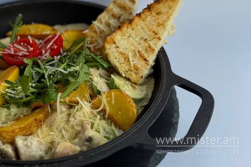 Бефстроганов з куркою та печерицями