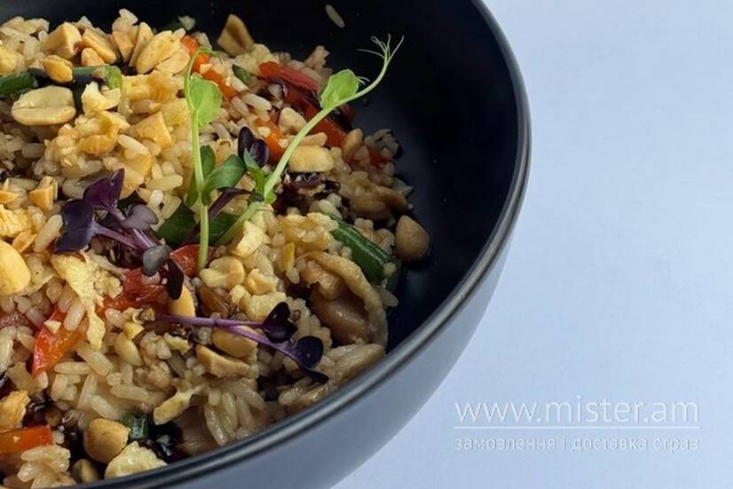 Печериці, яйце куряче, морква, філе куряче, перець болгарський, стручкова квасоля, цибуля порей, арахіс.