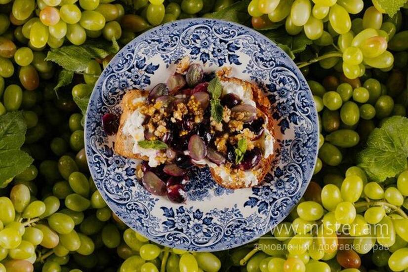 Солодкий акцент вечора: ніжний бріош, вершкове масло, виноград, мед і горіхи — все для гармонії смаку до келиха вина.