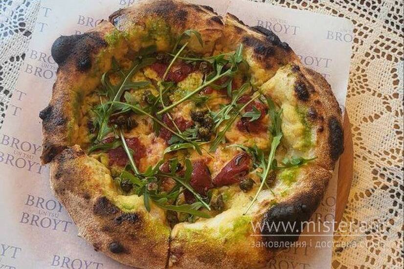 Ферментоване тісто, мій фірмовий найсмачніший хумус в Чернівцях, вишневі томати, рукула, каперси фрі.