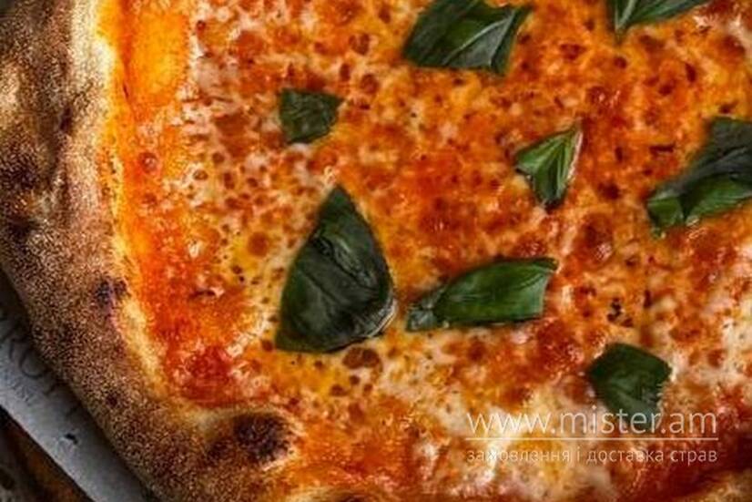 Найкласичніша неаполітанська піца на основі соусу з томатів Пелаті, моцарела, ферментоване тісто.