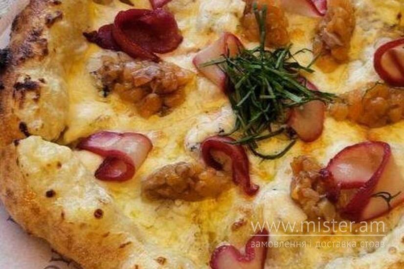 Broyt un tsu Broyt Піца з тартаром з лосося та маринованою грушею