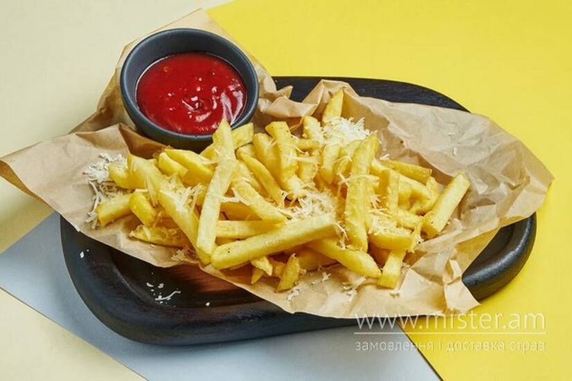 Картопля фрі з пармезаном та сирним соусом