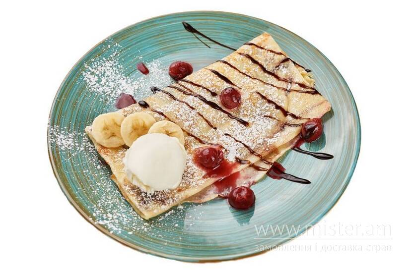 Млинець солодкий з нутелою та бананом та з вершковим морозивом