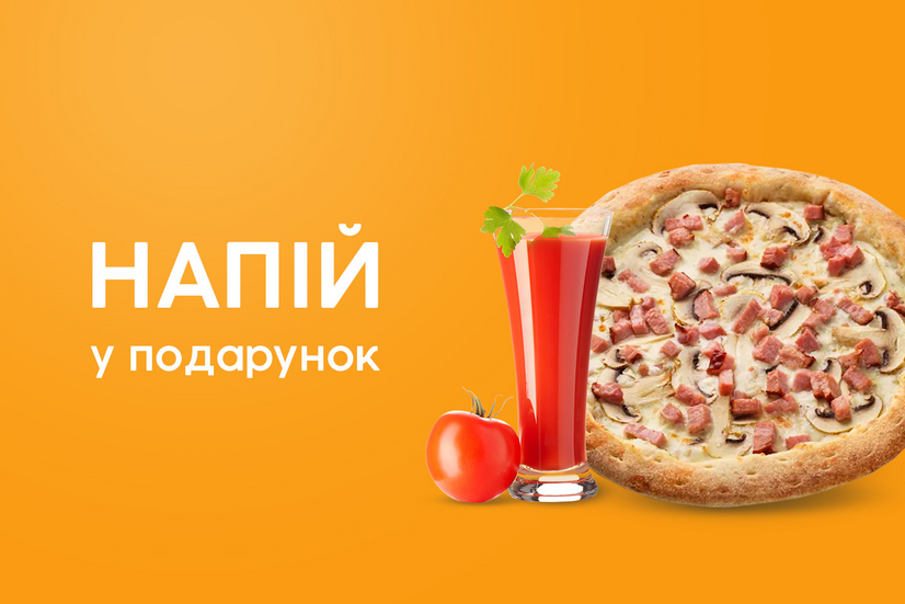 До кожної піци розміром 35 см чи будь якого ролу - 0,5 л узвару у ПОДАРУНОК!