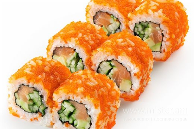 тобіко, авокадо, огірок, японський майонез, лосось копчений