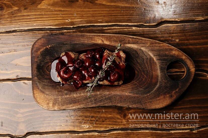 Ніжне теляче філе обсмажене з вишнею та розмарином.