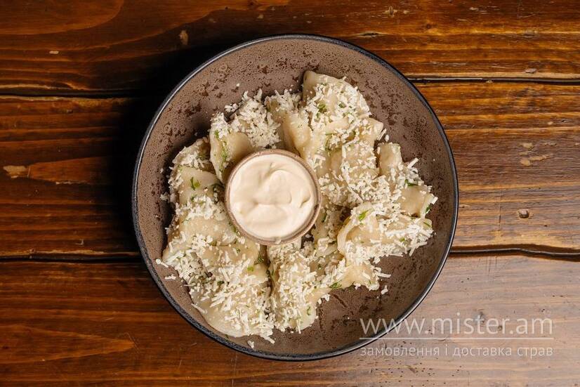 Вареники домашні з картоплею та бринзою та цибулькою зі сметанкою