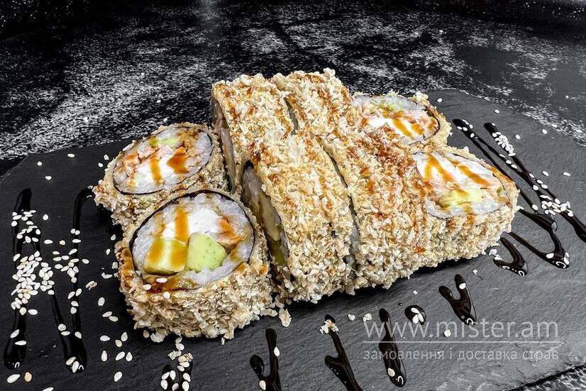 Рис, норі, сир Філадельфія, вугор, авокадо.