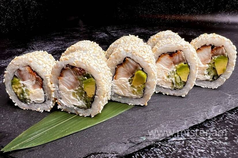 Рис, норі, кунжут, вугор, сир Філадельфія, авокадо, огірок.