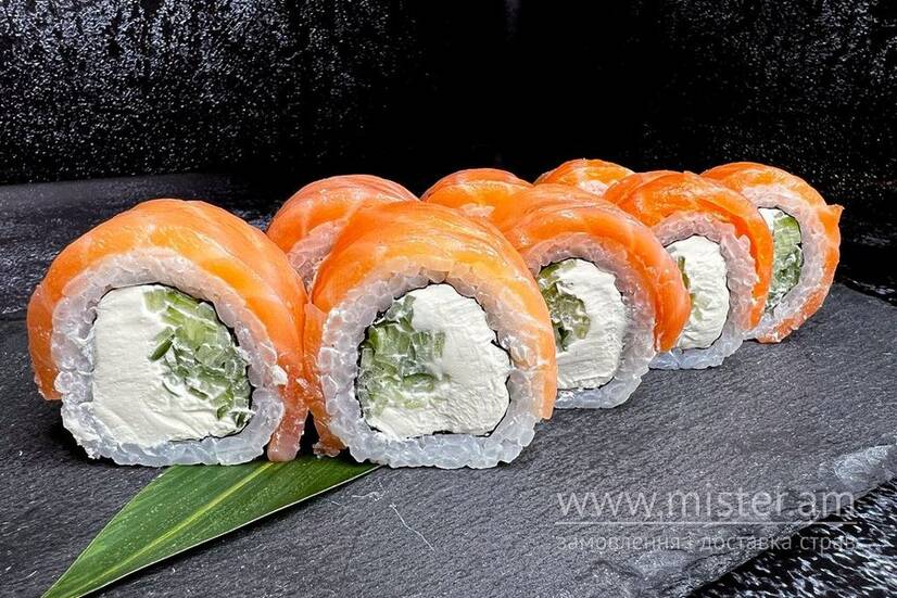 Рис, норі, сир Філадельфія, огірок, копчений лосось.